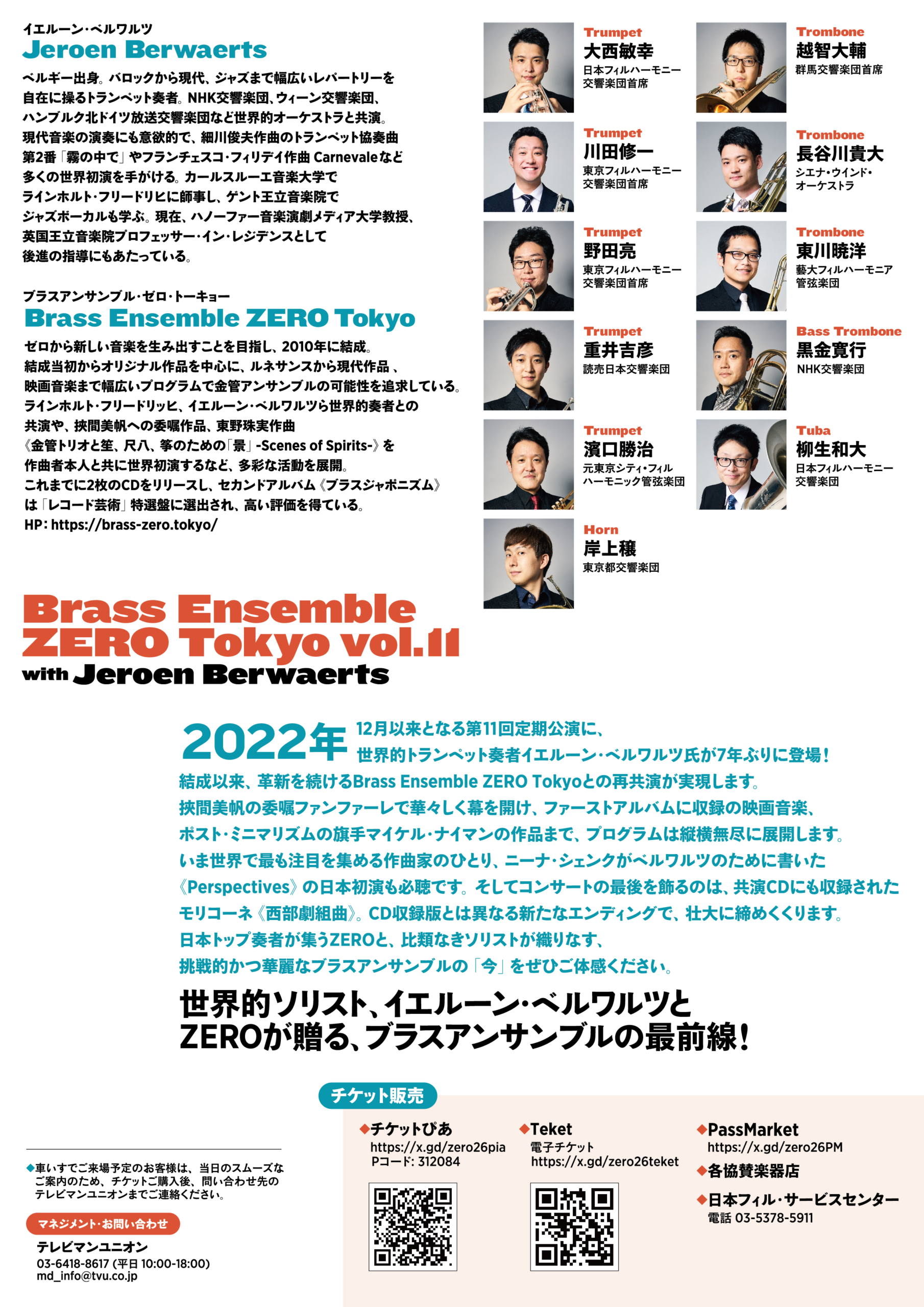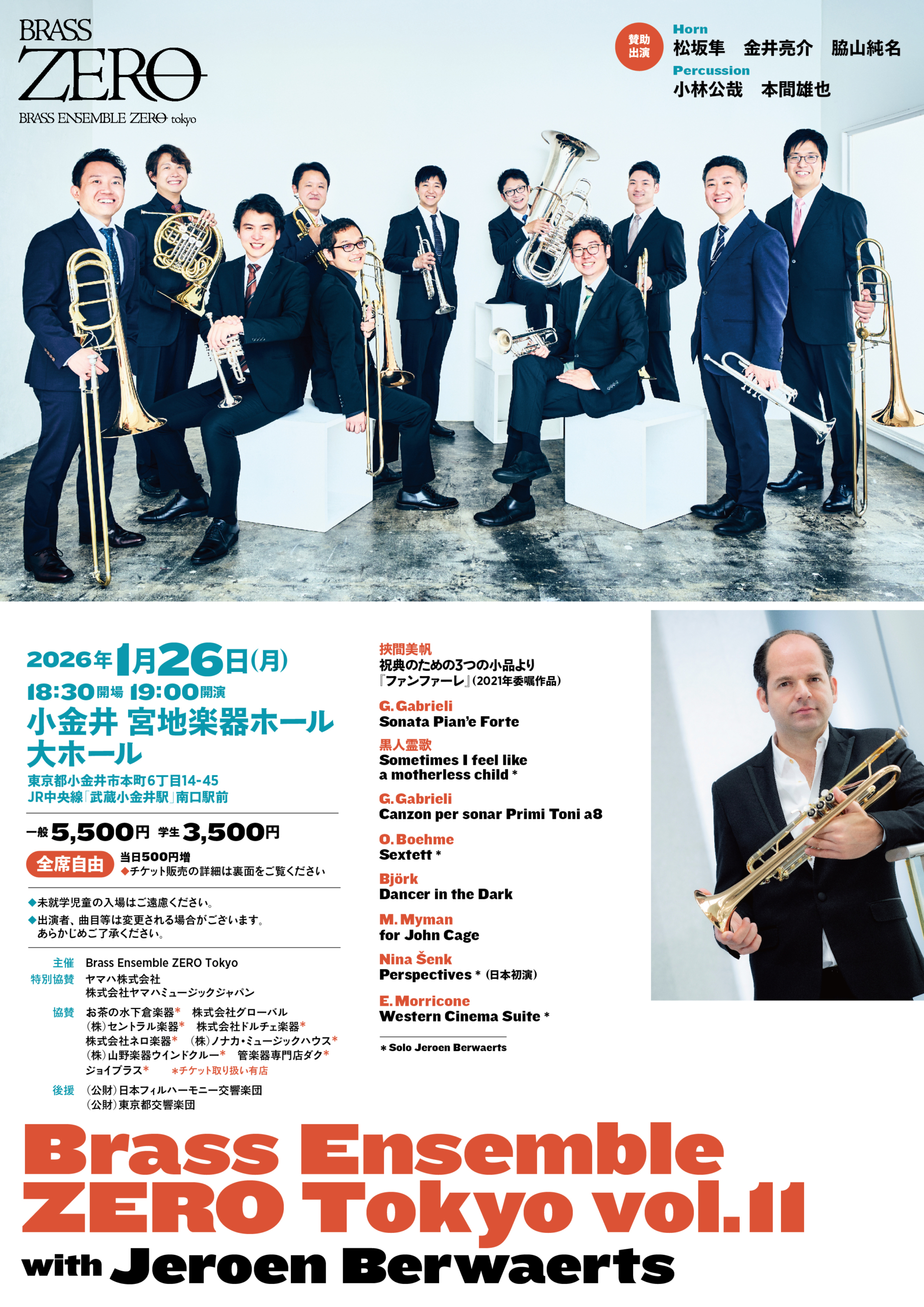 For the first time in seven years, Berwaerts returns to join Brass Ensemble ZERO Tokyo in their 11th regular concert.